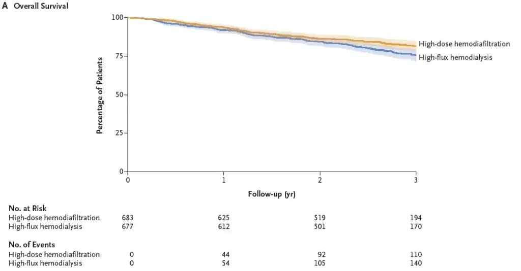**Artículo**: Effect of Hemodiafiltration or Hemodialysis on Mortality in Kidney Failure ([link](https://www.nejm.org/doi/full/10.1056/NEJMoa2304820?query=featured_nephrology))